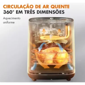 Esta incrível fritadeira de ar permite que você cozinhe sem a necessidade de usar óleo, proporcionando uma vida mais saudável para você e sua família.